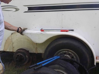 Problem: Horse Trailer Tire Tread Separated and Jammed in Fender, Preventing Tire Change